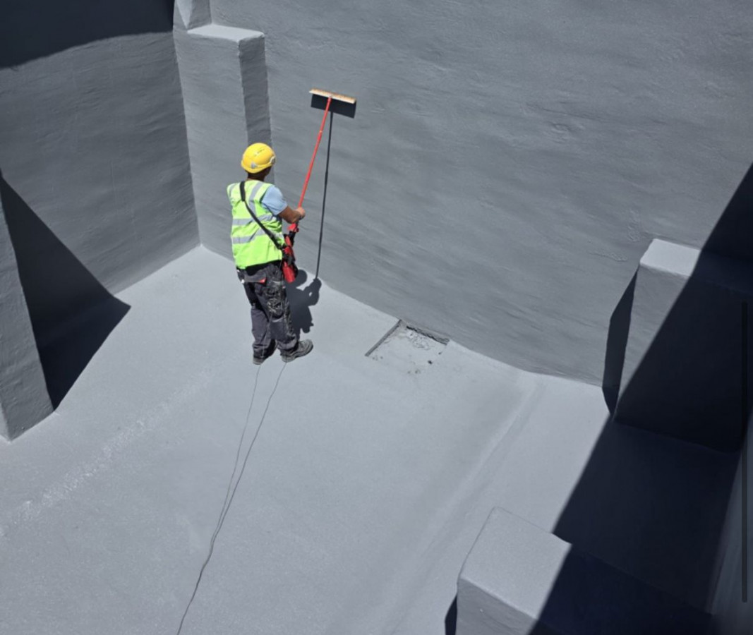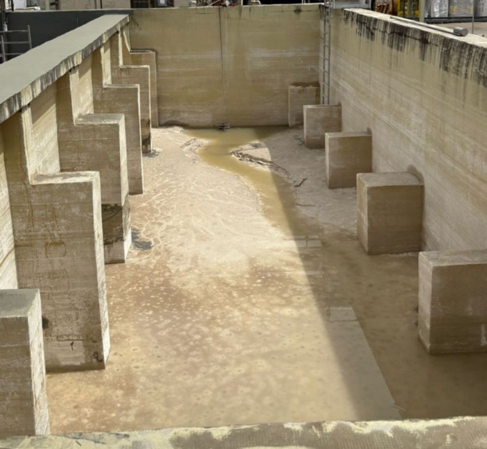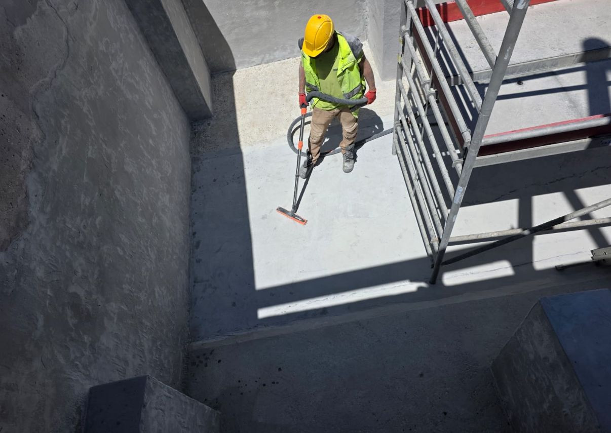 Pri realizácii sme vykonali pieskovanie, následne vysávanie, penetráciu podkladu, opravy sanačnou maltou a aplikovali chemicky odolnú polyureu.